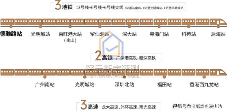 广深港高铁(已通车):1站深圳北,2站福田CBD,3站直达香港、广州
