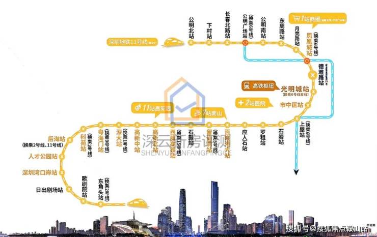 地铁13号线(在建中):最优黄金科创线,7站南山,直达南山留仙洞、科技园、深圳湾,高效通勤线路