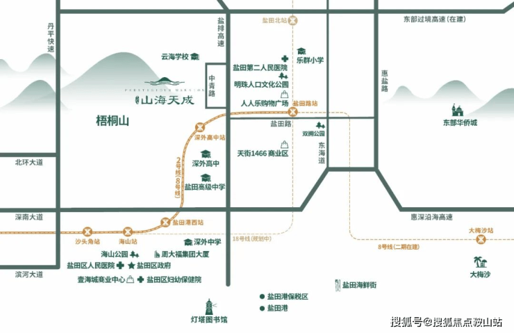 商业:周边无大型配套商业,项目临近距离目前盐田最大的购物中心壹海城 one mall 直线距离约3.2km。