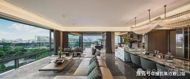 建面约255㎡江景大平层,独梯独户,东莞首个28㎡江景空中庭院,加上约66㎡环幕客厅叠加庭院形成的约100㎡LBDK巨幕会客厅,直接将龙湾湿地公园和东江景观搬进客厅,体验真正的无边界视野。