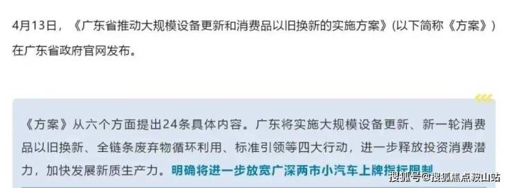 广东省最新方案表示,将进一步加快发展新质生产力,明确放宽广深两市小汽车上牌指标限制。