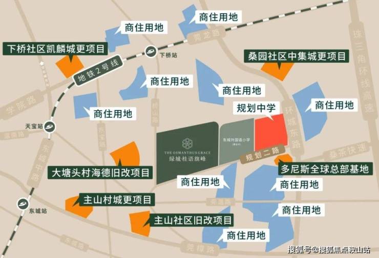 目前以中集国际数科城、多尼斯智研中心为主的高新数字产业群,正植根于东城主山,立足于东城主山;以东城外国语小学(建设中)为主的片区教育规划、以“绿城·桂语旗峰”等住宅为首的城市更新项目正有条不紊的推进、建设,通过聚合片区产业、教育、住房资源,助力东城主山区域生态构建和发展,东城主山片区,未来前景大有可期。
