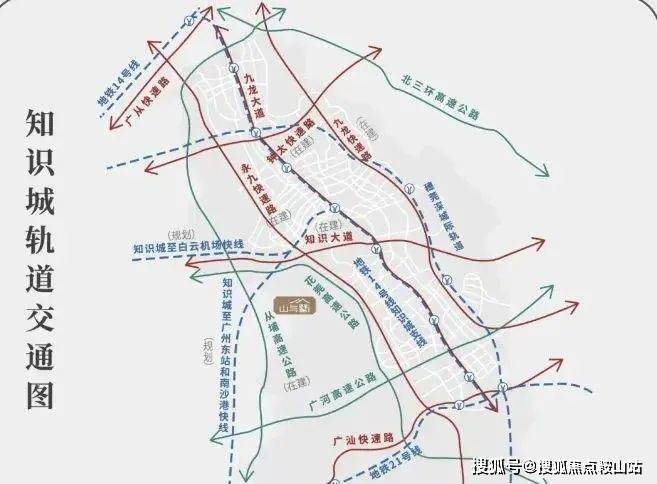 8 条轨道交通线路构建起强大的交通网络。知识城至南沙、广州东站等线路加强与周边区域联系。37 号线开通后,12 分钟可达广州东站,大大缩短与城市核心区域的通勤时间。新白广城际 2022 年开通运营,10 分钟直达白云机场,进一步拓展出行范围,方便商务出行与旅游,实现 1 小时大湾区交通圈。