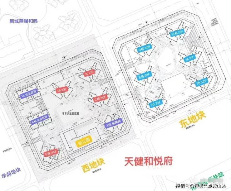 天健和悦府本次首推的是西地块,总占地面积约2.63万㎡,总建筑面积约18.43万㎡,计容建筑面积约13.56万㎡,容积率5,绿化率39.52%,共由7栋总高21-45层的住宅组成,其中1栋A座企业租赁住房33F,1栋B座商品房33F,1栋C座商品房21F,2栋住宅30F,3栋公租房31F,5栋商品房+公租房45F,6栋企业自持租赁住房33F,4栋是1所12班制幼儿园。