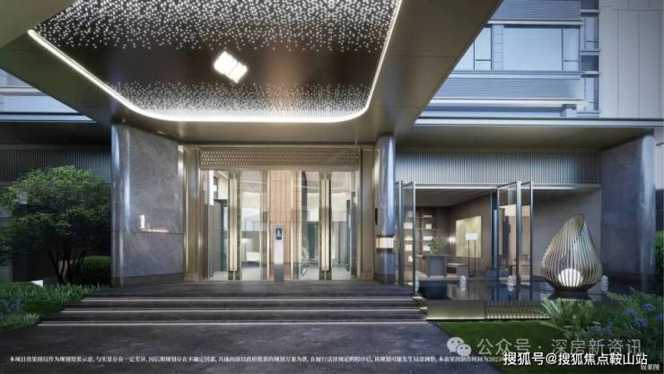 小区大门整体以“皇冠”为造型打造。搭配汉白玉雕塑、安哥拉黑大理石、罗汉松,紫山水奢石,带给业主尊贵的第一道归家礼序。