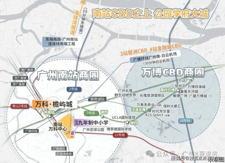 22号线(后通段)2025年开通,5站直达白鹅潭CBD。项目距离2号线,7号线地铁广州南站约1.5公里;6站到珠江新城,4站到海珠,4站到万博,小区有公交车和楼吧接驳地铁站。