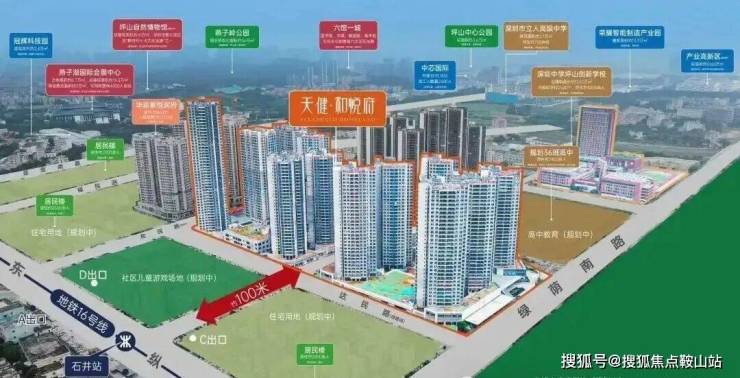 天健和悦府由深圳国企天健集团倾力打造,坐落于坪山区燕子湖城市会客厅核心,位处石井街道绿荫南路与达民路交汇处,紧邻地铁 16 号线石井站,步行约 200 米即达,5 站接驳 14 号线,快速通达福田中心区