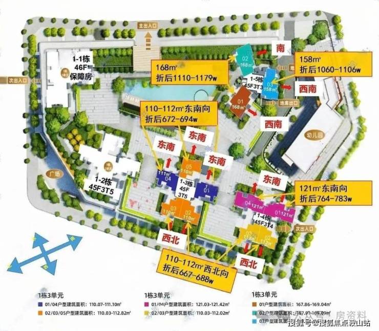 A区折扣总价:110平三房660万起,121平四房756万起,158平四房1049万起,168平四房1099万起