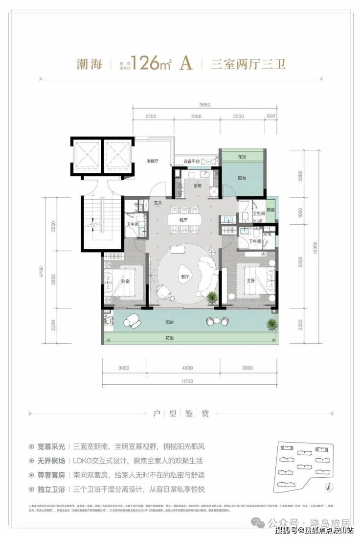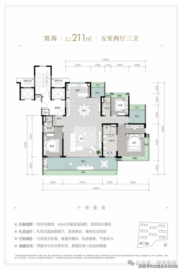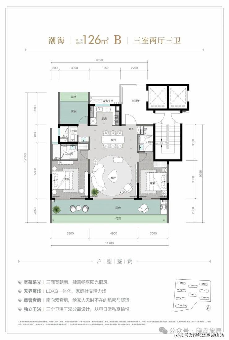 规划建面约 126-213㎡观海奢装大平层,以约 3.1 米阔尺层高拓宽空间尺度;部分户型创新打造 270° 全景飘窗主卧套、四开间朝南等设计亮点,全系高标奢装成品交付,重新定义高端舒居范式。