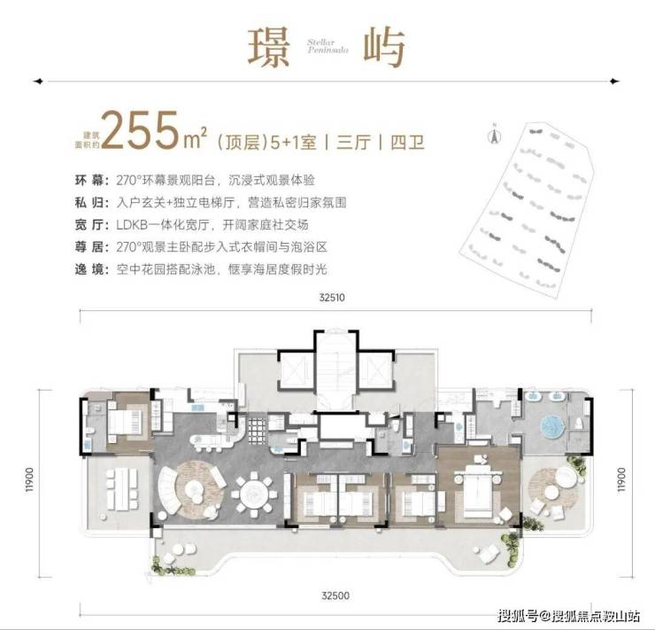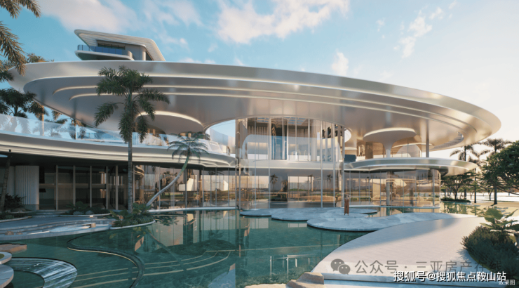 建筑以“超流体立面”呼应海浪肌理,通过悬挑阳台、底层架空消解建筑与水岸的边界,搭配 270° 观景阳台、云端泳池、环形瞰海露台等设计,让河景、海景与生活空间深度交融,成就“外揽海之豪迈,内藏河之幽静”的谧境岛居。