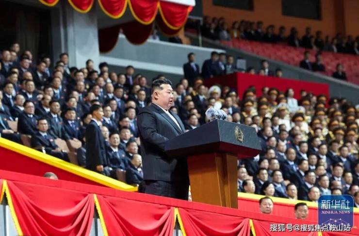 朝鲜劳动党总书记、国务委员长金正恩在阅兵式上发表讲话。多国政要出席阅兵式。