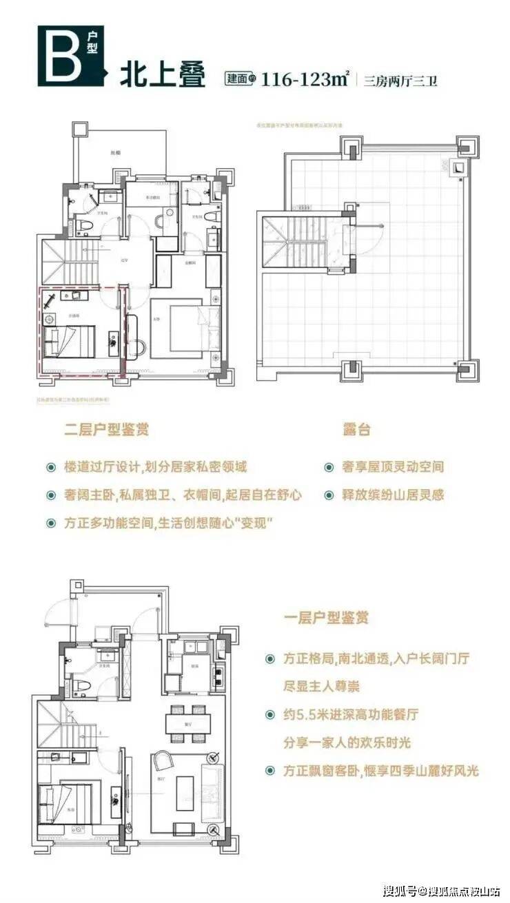 北上叠:建筑面积约116-123㎡三房两厅三卫