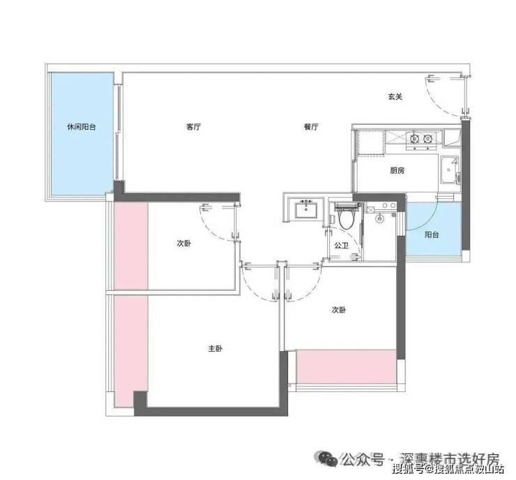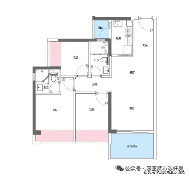 88m²的3房2厅2卫,设计的经典竖厅格局,进门入户玄关,LDKB一体化设计,三开间朝南,动静分区,L型厨房带1个小生活阳台,卫生间干湿分离,得房率94-98%(包含赠送),东南朝向,看小区园林或比亚迪+山景。