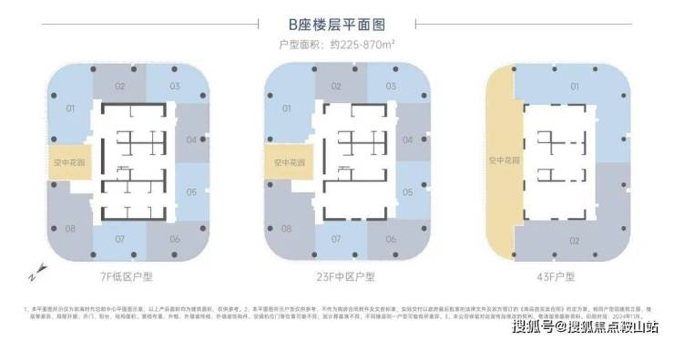 层高:4.5米(每三层带120㎡架空露台高13.5米)