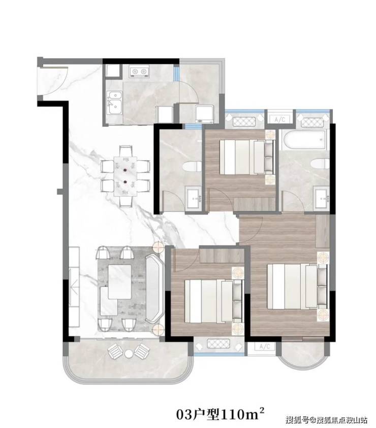 对比目前很多实用率超100%甚至110%的楼盘,致景轩产品略微过时,整体实用率仅约8成。