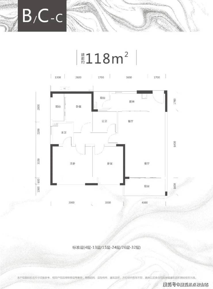 C栋B/C/E户型、约118-119㎡三房两厅两卫