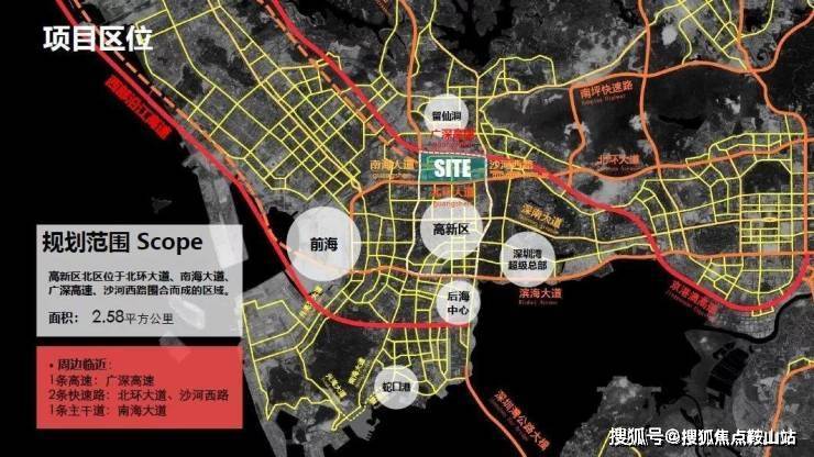 中国科创看深圳,深圳科创看南山,深圳市6+1总部基地,南山区独占4+1,项目毗邻深圳湾高新区总部基地,前海合作区,后海、深圳湾、留仙洞总部基地环绕,战略高地围合,智领深圳价值中芯