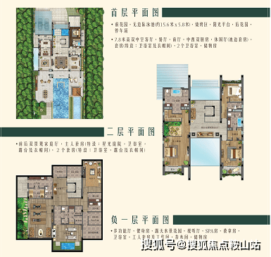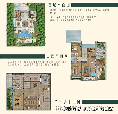 4室4厅6卫;地上二层,地下一层;单层净挑高4m;超大阳光平台;前入户停车花园,双车位;私家泳池花园层层叠加设计,配48㎡独立泳池,活动平台;烧烤区;前后花园设有独立入户门,业主可自由出入;步行2分钟即可到达沙滩海边。