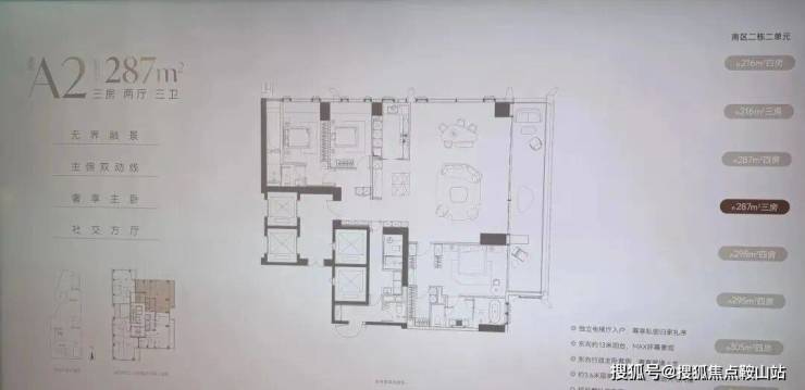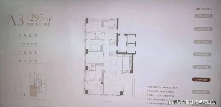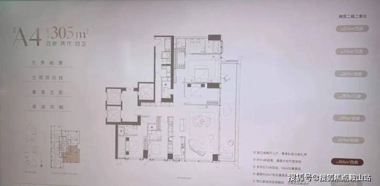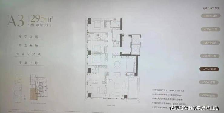 南区2-2栋全面调整,和北区不一样,调整成了低区216-287-295-305㎡,高区重做成了345-409-430㎡。想深度了解各户型优劣,可预约现场了解!