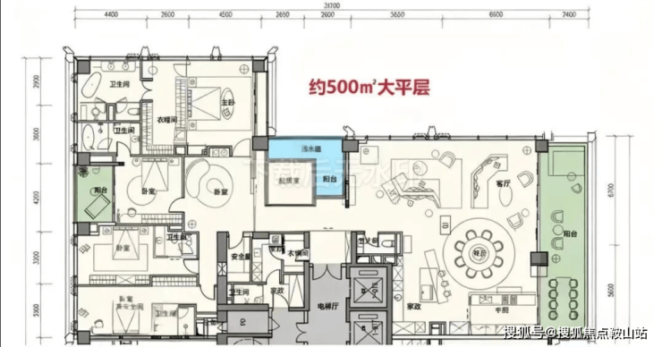 顶楼:约1050㎡整层大平层(仅3套)。