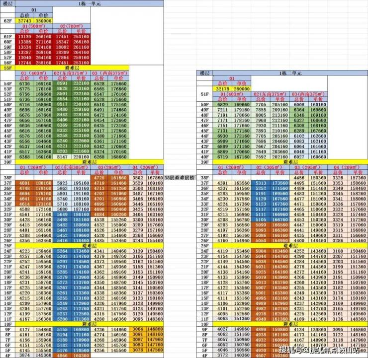 超高区(58层起,200米以上):约500-700㎡顶级大平层。