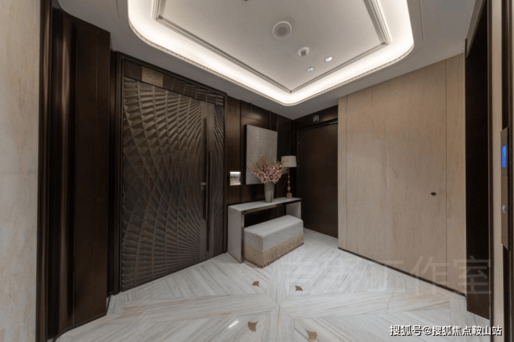 此外,独立电梯厅与入户玄关的双重礼序设计,也完成了从公共城市空间到私密居住空间的柔和过渡。独立电梯厅实现类一梯一户的私密体验,避免邻里动线交织,入户玄关预留充足收纳与过渡空间,既充分保障了居住的私密性,隔绝外界喧嚣,也为高阶家庭的归家仪式感提供了足够的支撑。