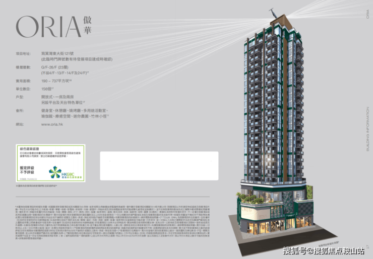 傲华属单幢式设计,楼高23层,每层设4伙或8伙单位,合共提供156伙分层住宅。