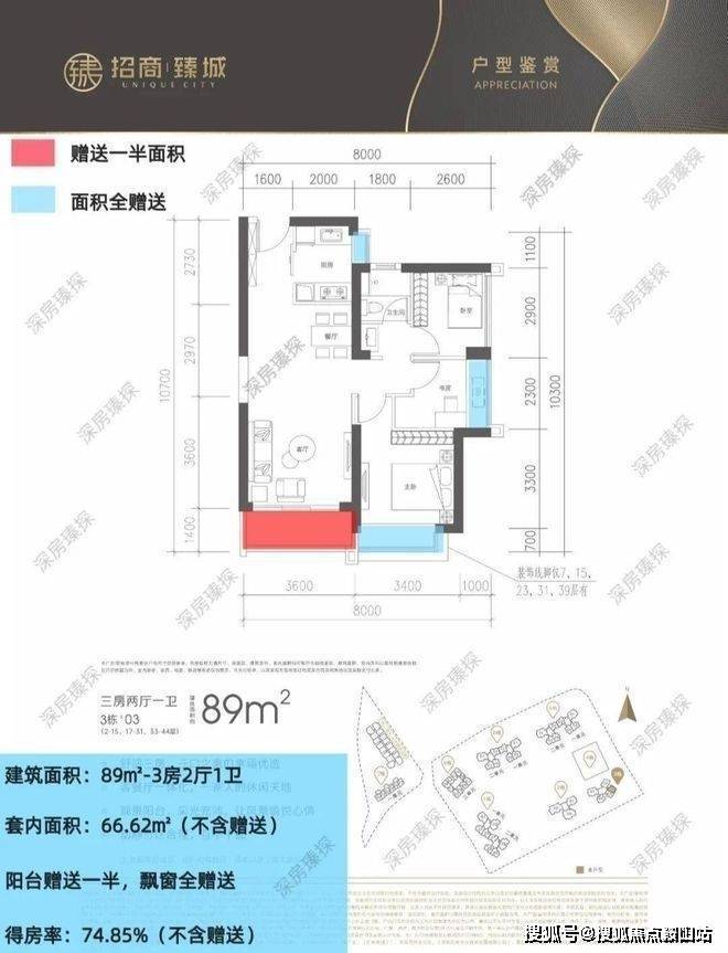 招商臻城,招商蛇口深圳2023年的首发钜作,以百年央企品牌、万亿战略潜力、百万体量大城,引领城市生活升级,开启现代人居全新篇章,打造全维度丰盈配套人居新范本。项目于2023年3月入市,在售建面约90-181m三至五房实景现房,6月已如期交付首期业主。赢领一城所爱,市场数据遥遥领先”,获龙岗区2023年4-10月期间总销售面积、套数、金额三冠王。(数据来源:克而瑞,摘录时间:2023年10月)