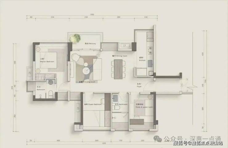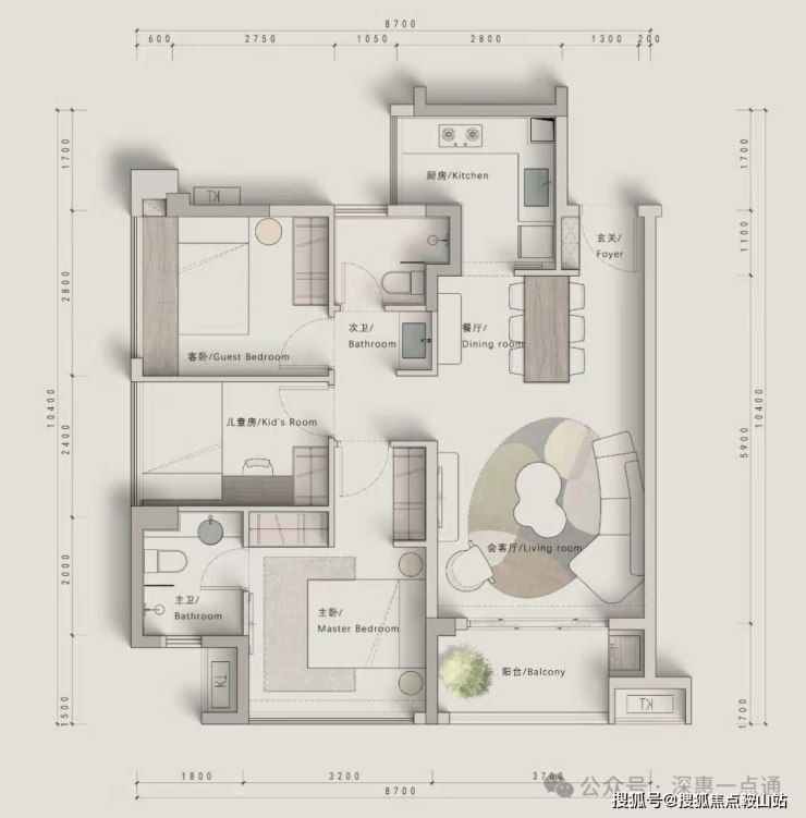 •A1户型:89㎡横厅,使用率接近百分之百,相当于市场105平的户型