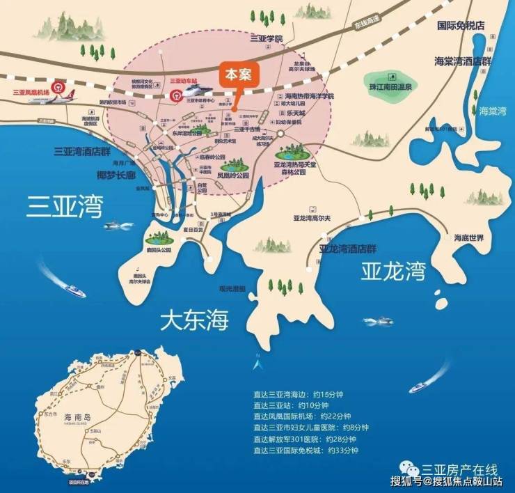位于荔枝沟主干道,联通凤凰路和G98东线高速。距高速出入口仅5分钟车程,到三亚动车站10分钟,到三亚凤凰国际机场25分钟,项目门口有3/6/21/33/37等多条公交路线通达全城,交通便利!
