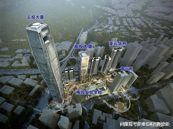 城建云投创新金融总部基地,整个项目由1栋81层高端商务写字楼(云投大厦),1栋48层研发办公楼(高投大厦研发办公楼),1栋36层公寓,1栋54层云端住宅(凌云华府),3栋46-60层保障性住房(青云苑),1所九年一贯制梅园实验学校,1所18班幼儿园组成,建成后将打造成为集商业、研发办公、住宅等功能为一体的高品质城市综合体,打造深圳创新金融和科技总部基地。