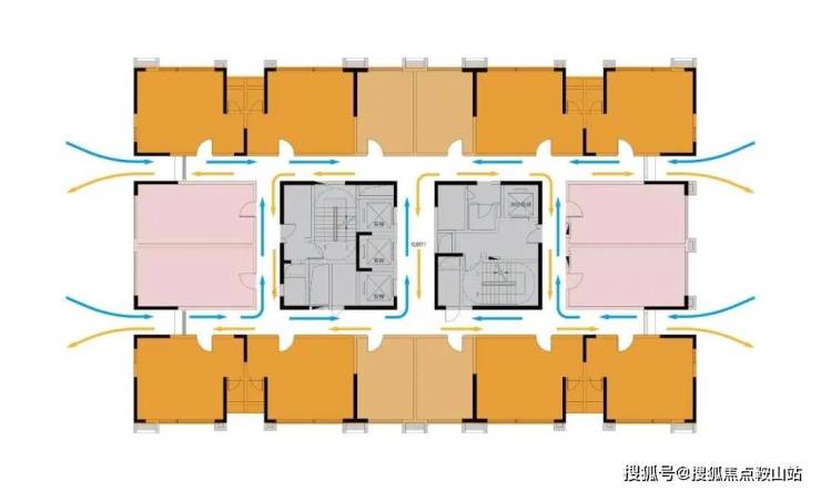 摒弃传统单过道,采用双环通走廊,极大提升通风采光