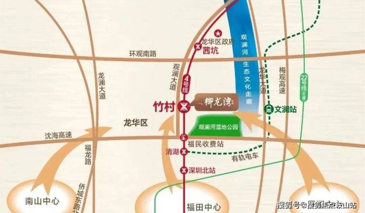 轨道交通:地铁4号线竹村站上盖,商业MALL直连,停车场直连地铁出入口,7站速达深圳北、13站钟直达福田中心,对接深港生活圈;电车文澜站,直线距离约500米,地铁22号线(在建中)。