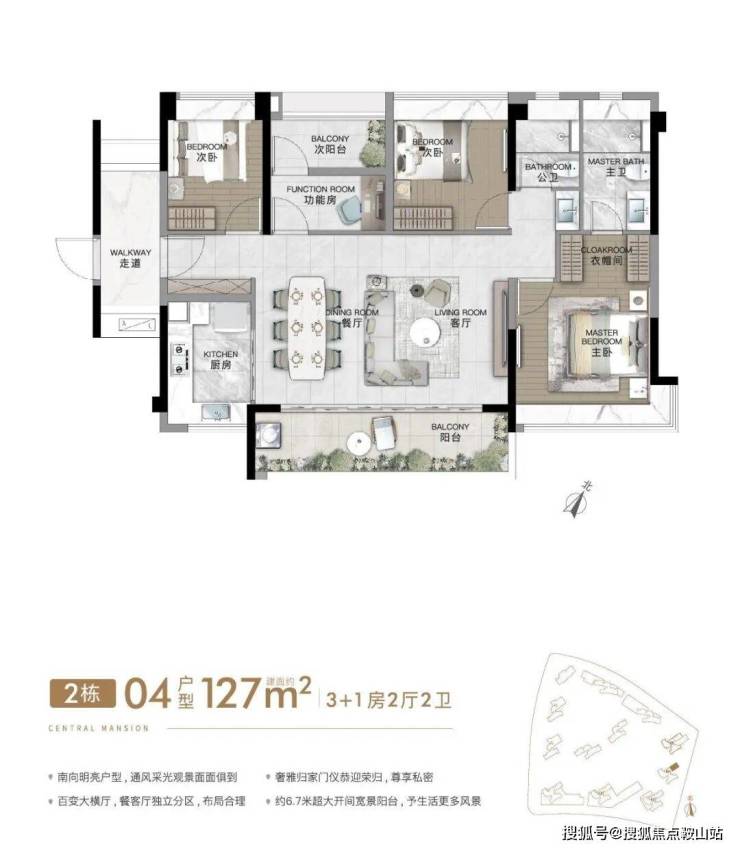 建面约127㎡4房2厅2卫(横厅)四开间南向采光,约13.2m超长南向采光面,豪华主卧套房,超大270°转角飘窗。