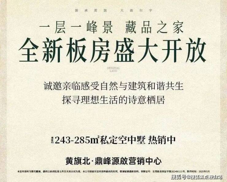 鼎峰·源啟(别名:尚境山居花园)位于东莞外国语学校正对面,地处黄旗北板块。由扎根东莞20年的鼎峰集团打造,主推建面约243-285㎡私定空中墅,全盘仅150席。项目南望黄旗山,坐拥虎英湖、峰景高尔夫景观,周边配套成熟,是稀缺的高端人居项目。
