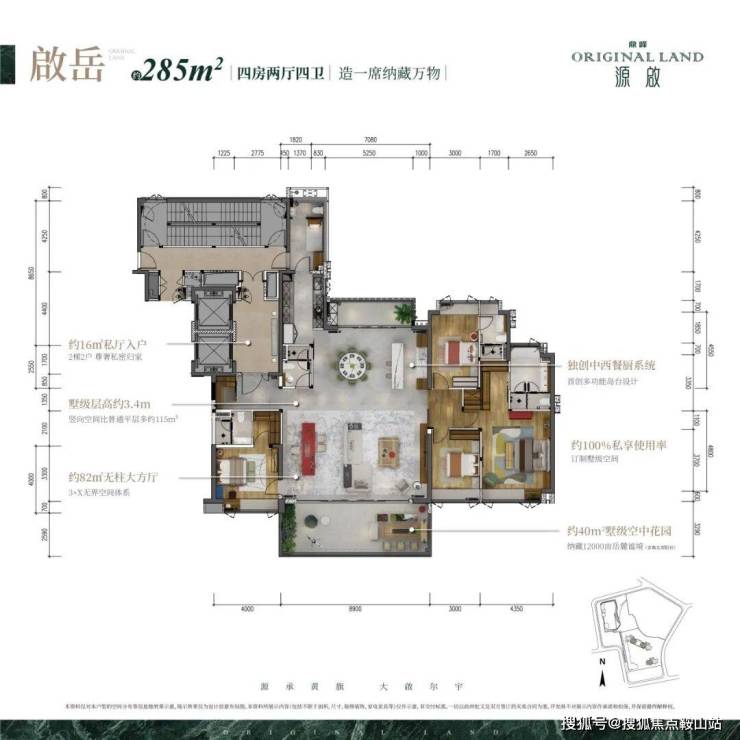 「鼎峰源啟」,整个小区总建面约10万㎡,规划有150套,243-285㎡私定空中墅产品,纯大平层项目。