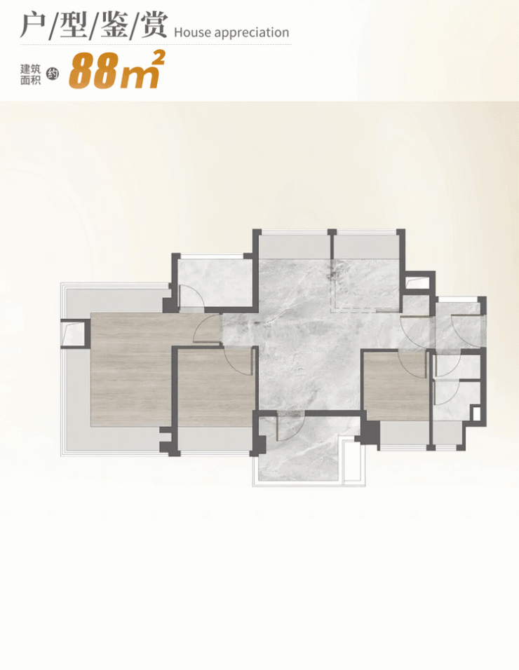 项目正式公布的户型也不错,使用率达到100%以上。最小75㎡三房,实得面积90㎡,并做到全部卧室朝南。