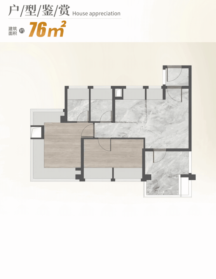 建面约76㎡户型,做到三房两卫,四开间朝南,是天河的稀缺小户型。