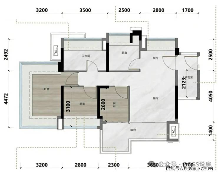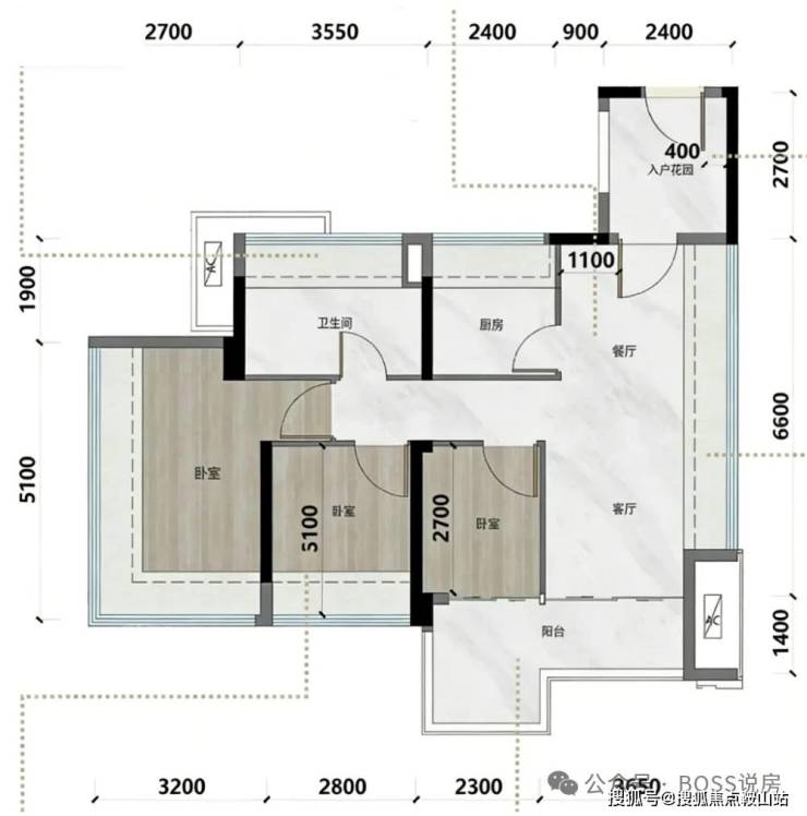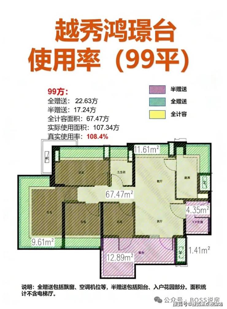 产品亮点:新规高使用率(据称超 100%),全屋飘窗,搭配入户花园与大面积阳台,空间通透。