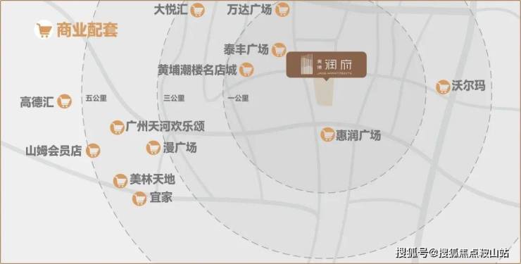 项目的对面就是老黄埔的惠润广场,虽然不是很高端,但也是老黄埔的老牌商业,5号线抵达美林天地、宜家家居、山姆会员店等;7号线通达万达广场、至泰广场等