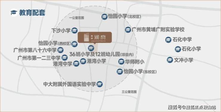 自身配建一所12班幼儿园,一所36班小学,初中依靠周边现有配套。
