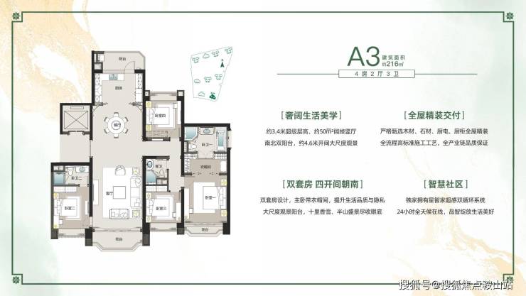 ① 全小区仅此一栋 216㎡绝版户型,户型设计堪称标杆,未来再无复刻可能;