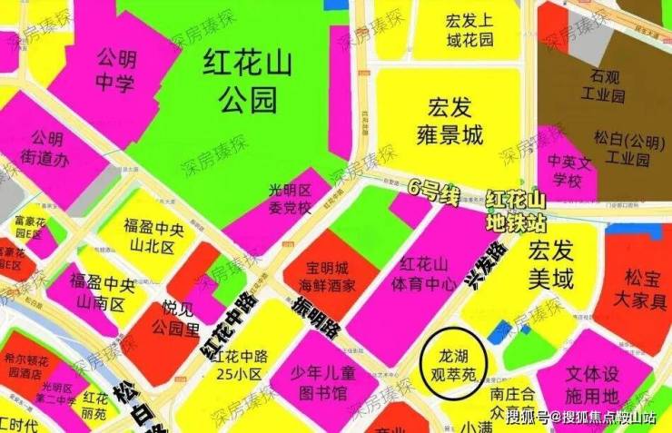 龙湖观萃苑,位于深圳光明区公明街道核心地段,紧邻红花山公园(约27.3万㎡),步行可达红花山体育中心、光明区文化馆等市政设施。项目周边1.5公里范围内拥有光明区最大商业体大仟里购物中心(15万㎡)及天虹商场,2公里内可达百佳华商场,生活配套成熟。