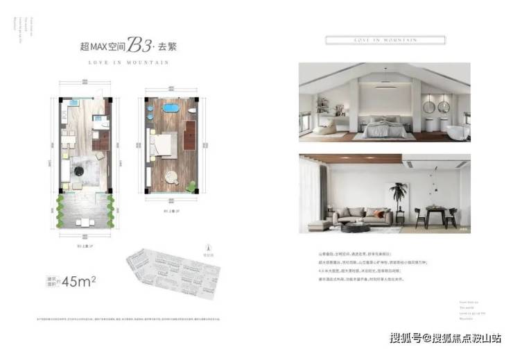 建面45平:层高4.5+1.9米尖屋顶(可拓为两层)