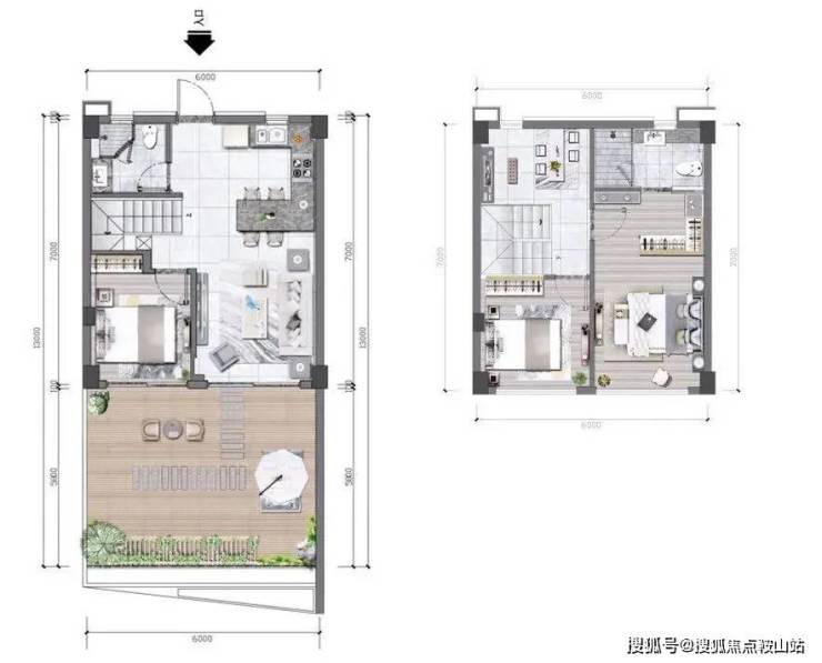 建面53平:层高6米(可拓为两层)