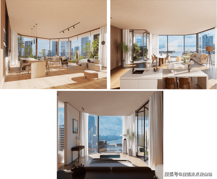 以浅木饰与天然石材为主,色调明亮,空间感更强,整体呈现度假风慵懒氛围,适合偏好轻松风格的业主(个人会更喜欢这个风格)。