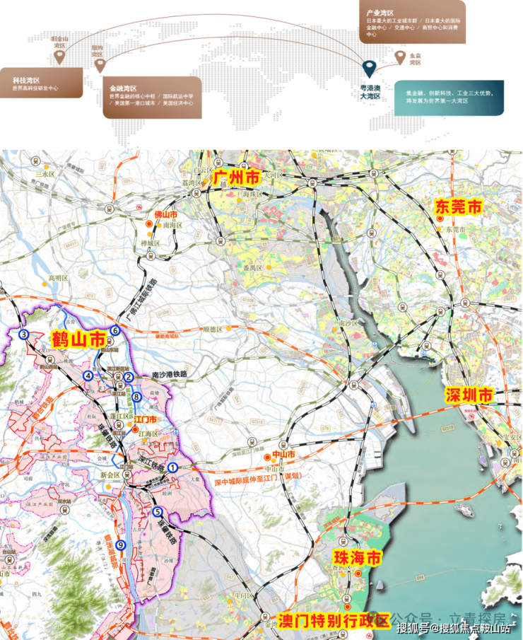 鹤山将通过构建鹤山东站、鹤山西站和江门北站三个高铁客运站接入五大轨道线路,打造一个湾区真正的交通中心,一小时连通广佛江珠。