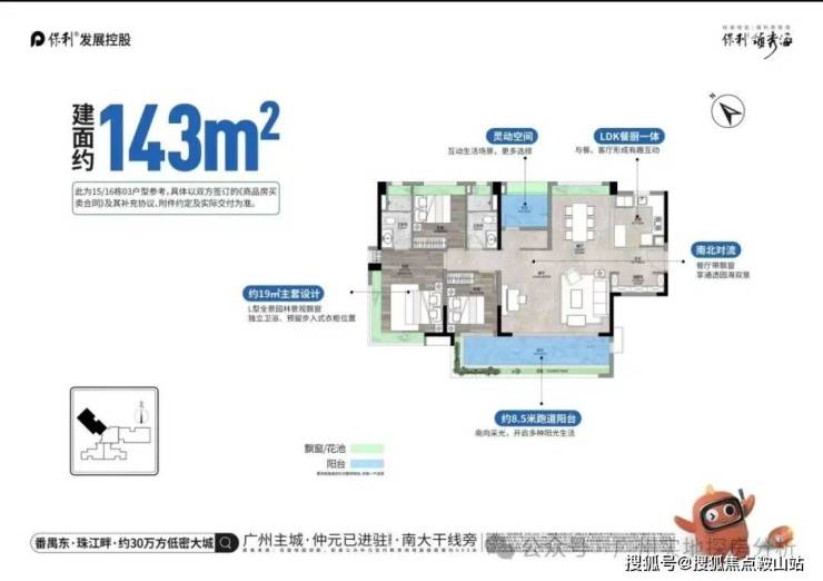 景观不错,东南临海 L型环幕海景-珠江入海口+狮子洋,瞰1.5km海景面。东低西高围合布局,max级别海园双景。