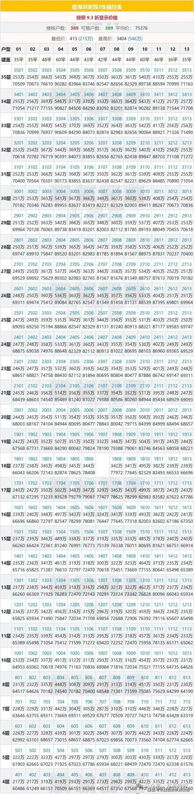 望海玥家园2栋开盘折后价格表: