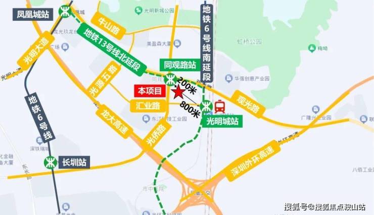项目距离13号线/6号线支线光明城站1公里;同时也是光明城高铁站,也是广深港高铁线和赣深高铁进入深圳的第一站,周边还邻近观光路,光侨路,深圳外环高速,龙大高速等主要交通要道。